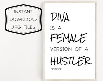 Diva Is The Female Version Of A Hustler Instant Download Beyonce Lyric Printable