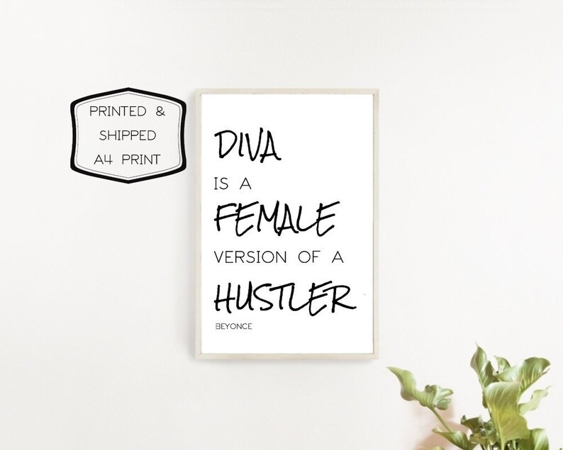 Beyonce Quote Print Beyonce Poster Beyonce Song Lyric Print Diva Is A Female Version Of A Hustler