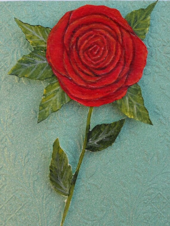 Hand Painted Red Rose Greeting Card Roses Anniversary Valentines Day